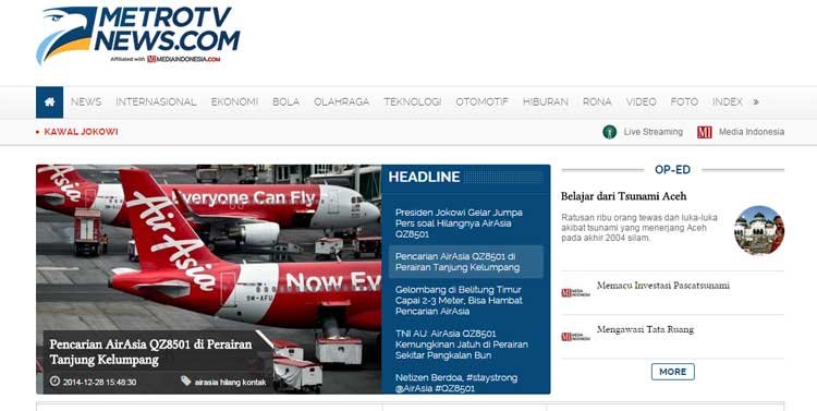 de tráfego aéreo de Jacarta às 6h17 (horário local, 20h17 de sábado, 27,