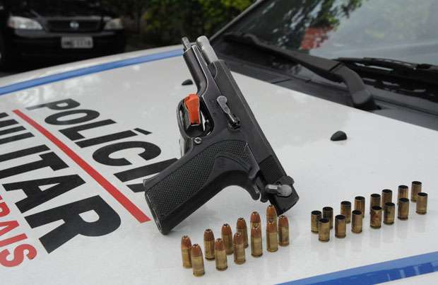 Pistola apreendida pela PM com menor de 17 anos no tiroteio |
