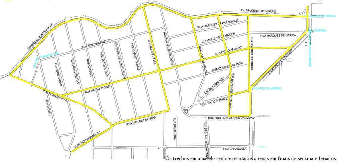 Entre as vias que terão pontos de interdição estão as ruas Abre Campo, Antônio Dias, Barão de Macaúbas, Carlos Gomes, Celso Werneck, João de Freitas, Joaquim Murtinho, José Ribeiro, Mangabeiras, Mar de Espanha, Marabá, Marques de Maricá, Marques de Paranaguá, Nunes Vieira, Paulo Afonso, Pitangueiras, Professor Arduino Bolívar, Professor Magalhães Drummond, Quintiliano Silva, Rafael Magalhães e Teixeira de Freitas.